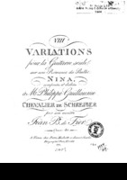 8 Variations pour une Guitare seule sur une theme de l'opera Camilla composées et dediées à Mad.me Eugenie de Allegne par J B. de Fier