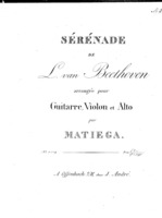 Matiegka, Wenzeslaus Thomas Beethoven, Ludwig van Serenata del L. von Beethoven: acomodata per il violino, viola e chitarra / del Matiegka: NB la parte della chitarra e molto facile